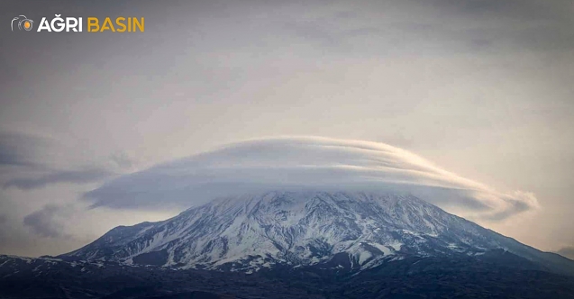 Fotoğraf sanatçısı Mehmet Kılıçoğlu, Ağrı Dağı zirvesini saran nadir mercek bulutunu fotoğraflayarak eşsiz bir görsel şöleni ölümsüzleştirdi.