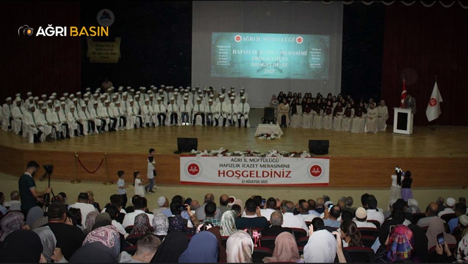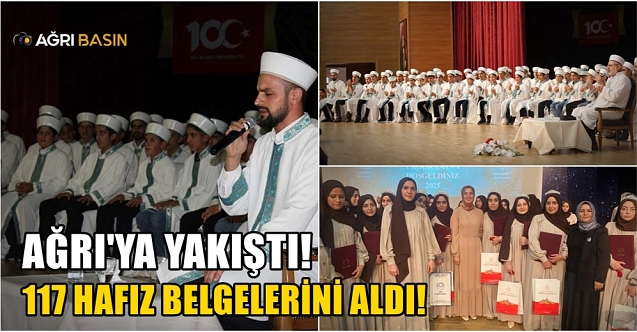 Ağrı’da düzenlenen coşkulu törende 35 kız, 82 erkek olmak üzere toplam 117 öğrenci Kur’an-ı Kerim’i ezberleyerek hafızlık belgesi almaya hak kazandı.