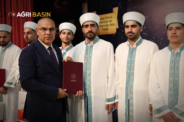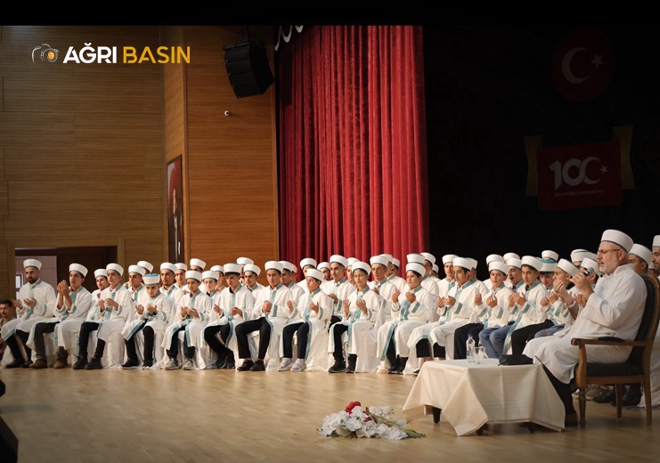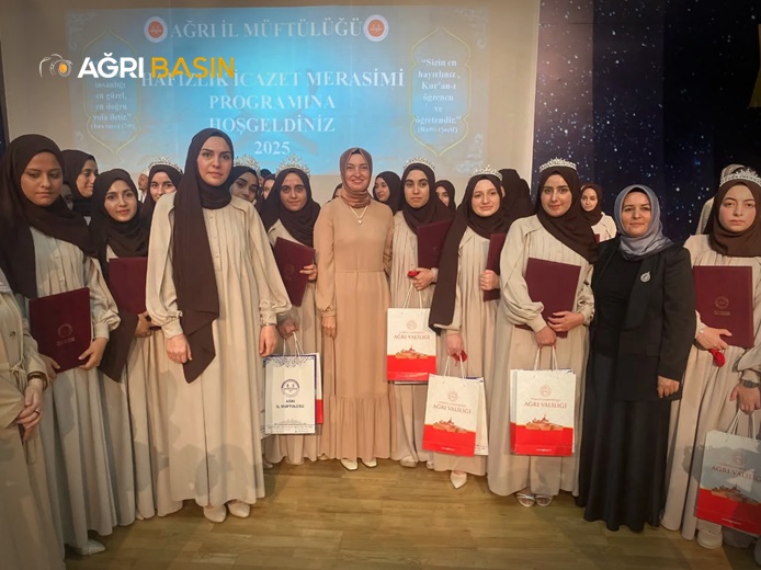 Öğrenciler sahneye davet edilerek icazet belgelerini aldı. Kız öğrencilerin taç merasimi, Ağrı Valisi Mustafa Koç’un eşi Neslihan Gül Koç tarafından gerçekleştirildi.