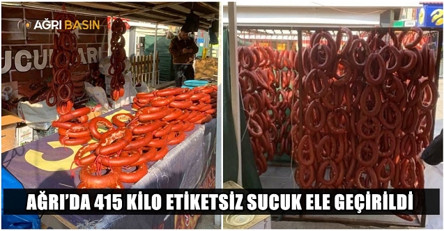 Ağrı’da yapılan resmi denetimlerde etiketsiz ve soğuk zinciri bozulmuş 415 kilo sucuk tespit edilerek imha edilmek üzere el konuldu. Olayla ilgili yasal işlem başlatıldı.