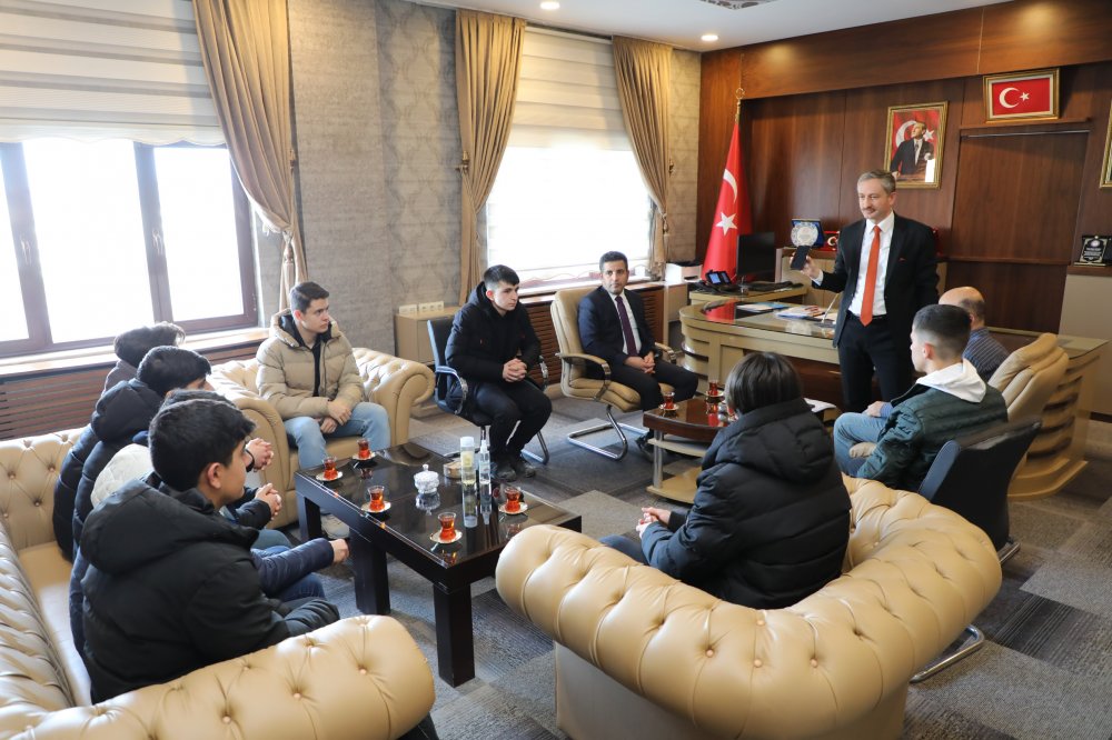 Ağrı İl Milli Eğitim Müdürü Hasan Kökrek, Bitlis'in Ahlat ilçesine kampa gidecek olan lise öğrencilerini makamında kabul etti.