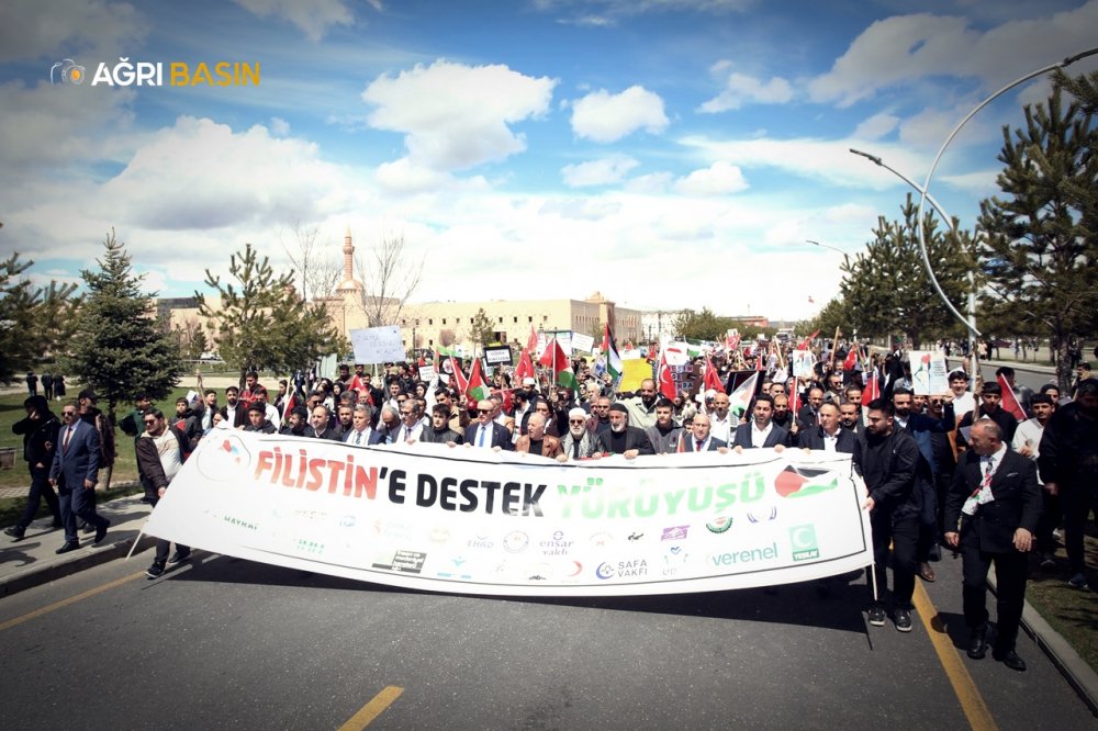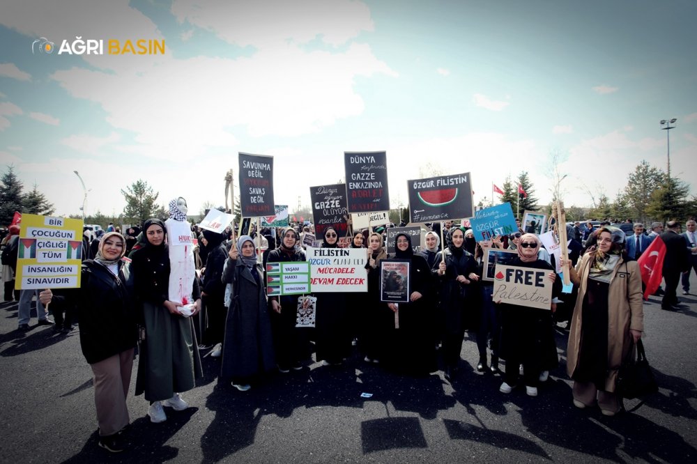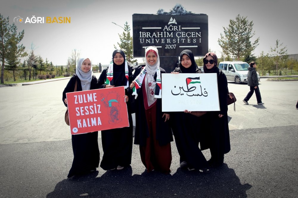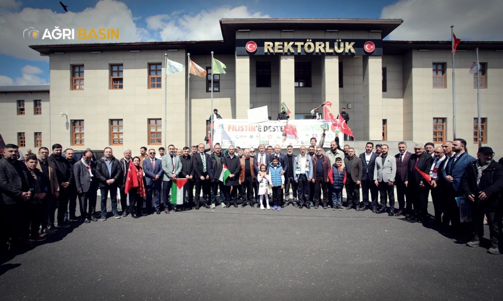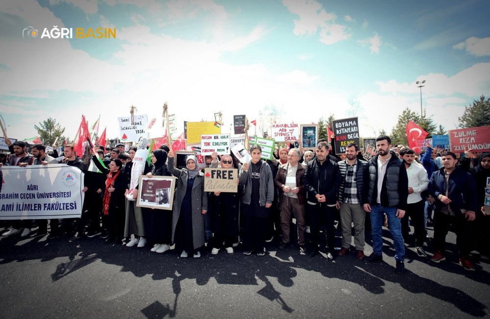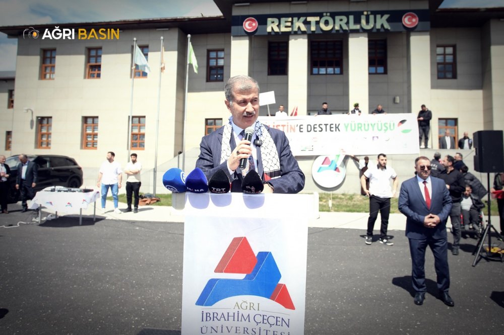 Ağrı İbrahim Çeçen Üniversitesi'nde düzenlenen dev yürüyüşte akademik dünya, öğrenciler ve STK'lar tek yürek oldu: "Özgür Filistin!" Rektör Gülçin'den güçlü kınama.