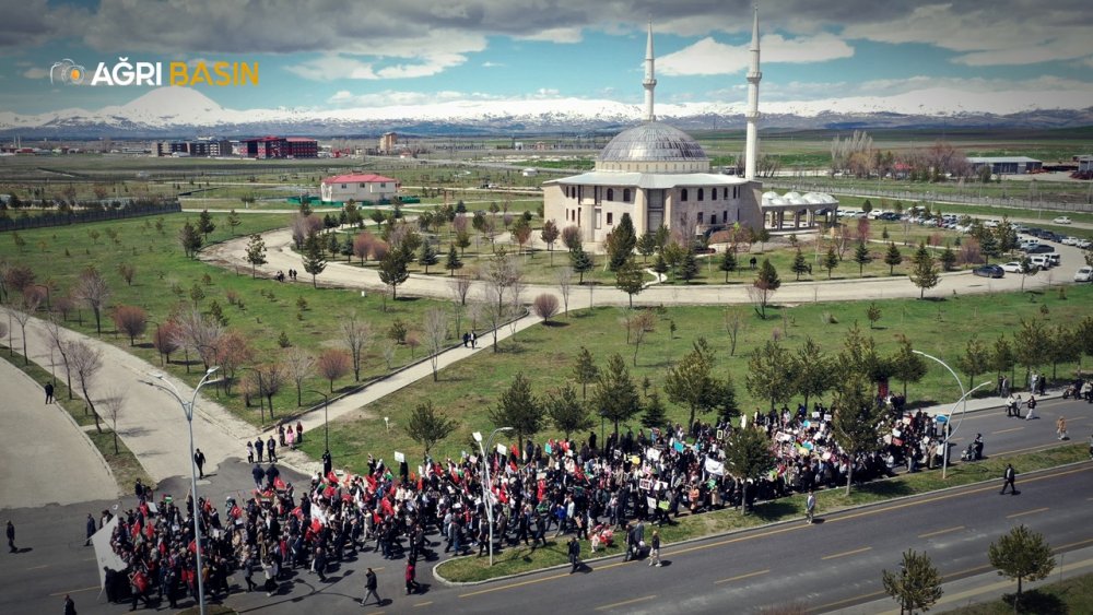 Ağrı’nın eğitim ve kültür merkezi olan AİÇÜ kampüsü, bugün tarihi bir güne tanıklık etti. Nurettin Atmaca Üniversite Camii'nde kılınan öğle namazının ardından başlayan kortej yürüyüşü, bir nehir gibi Rektörlük binasına aktı.