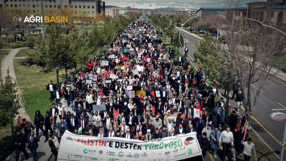 Ağrı İbrahim Çeçen Üniversitesi ve sivil toplum kuruluşları olarak her zaman mazlumun yanında durmaya devam edeceklerini belirten Prof. Dr. Gülçin, sözlerini uluslararası topluma yaptığı güçlü bir çağrıyla tamamladı. Uluslararası toplumu ve ilgili kurumları yaşanan bu derin insanlık dramına karşı daha güçlü ve somut adımlar atmaya davet eden Gülçin, "Bizler buradayız, sesimizle, dualarımızla ve duruşumuzla Filistinli kardeşlerimizin yanındayız" dedi. Program, Filistin’de hayatını kaybeden şehitler için yapılan duygu yüklü duaların ardından sona erdi. Bu yürüyüş, Ağrı’dan dünyaya yükselen bir adalet çığlığı olarak hafızalara kazındı.