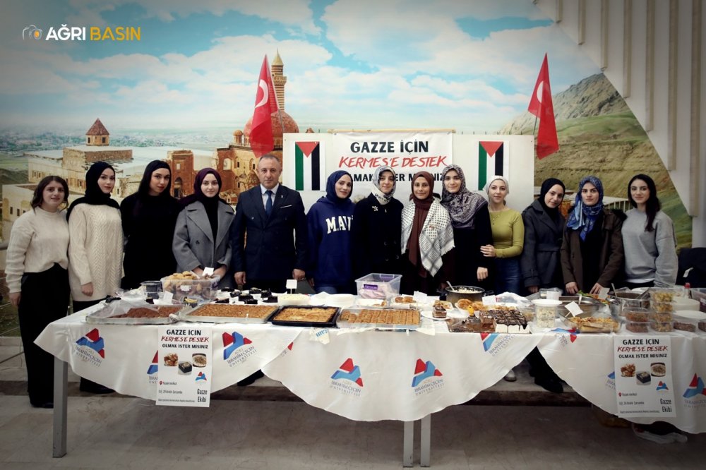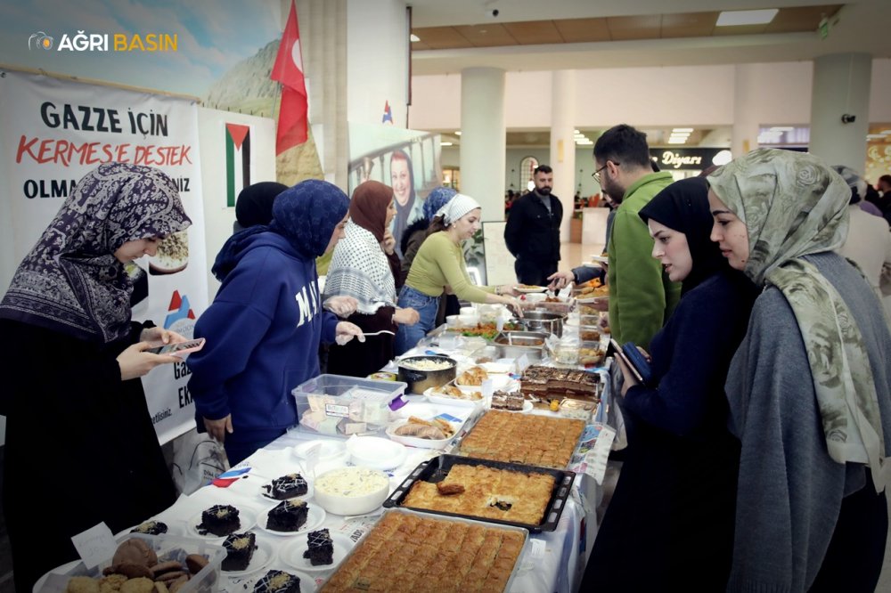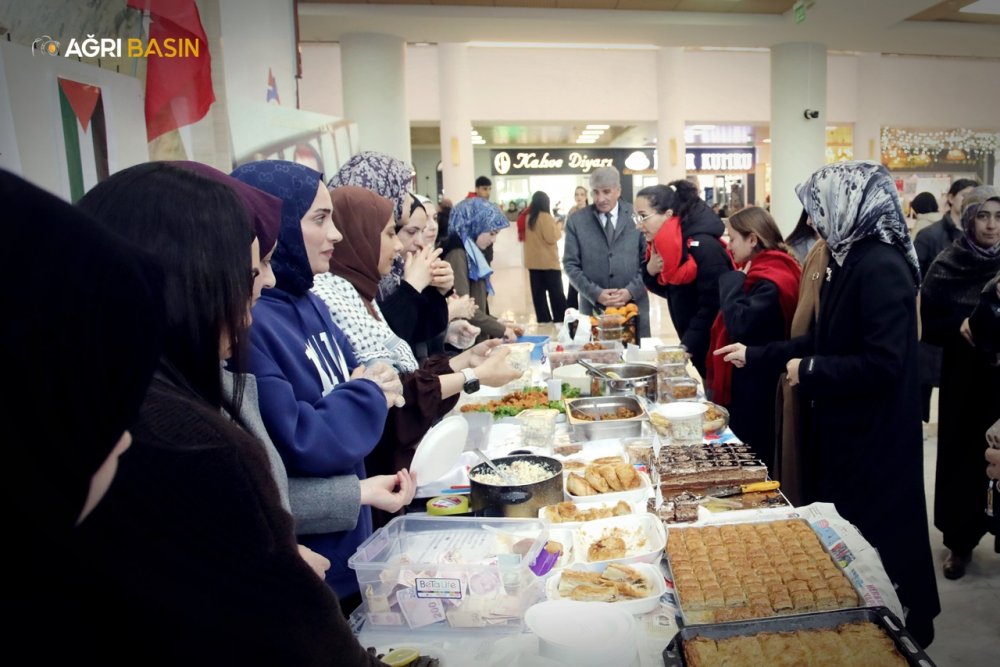 Ağrı İbrahim Çeçen Üniversitesi’nde öğrenciler öncülüğünde Gazze’ye destek amacıyla düzenlenen kermes, yoğun ilgi gördü.