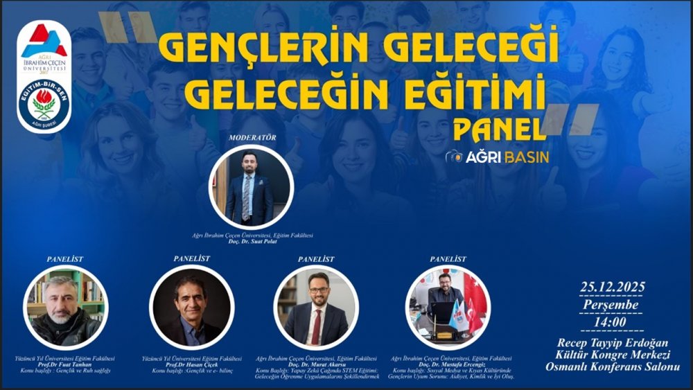 Doç. Dr. Suat Polat moderatörlüğünde gerçekleştirilecek panelde, alanında uzman akademisyenler gençlik ve eğitim ekseninde önemli başlıkları ele alacak.