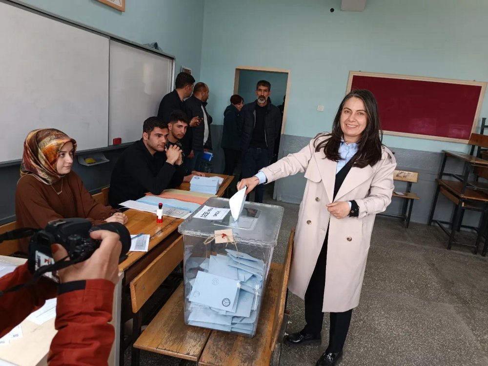 DEM Parti Ağrı Belediye Başkan Adayı Hazal Aras, Merkez Öğretmen Nurgül Gelturan Mesleki ve Teknik Anadolu Lisesi’nde oy kullandı.