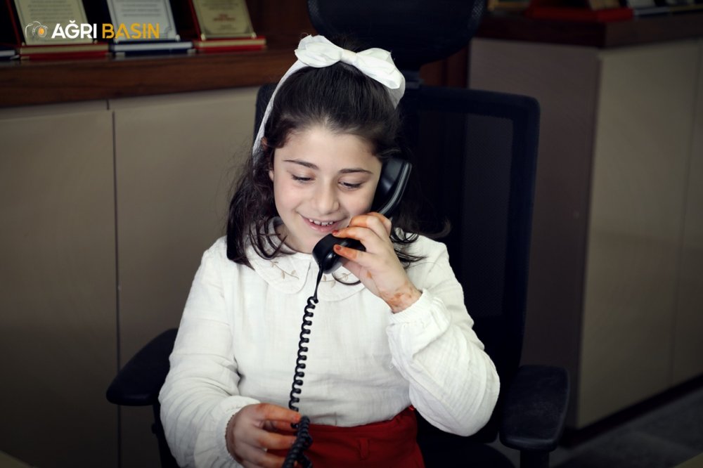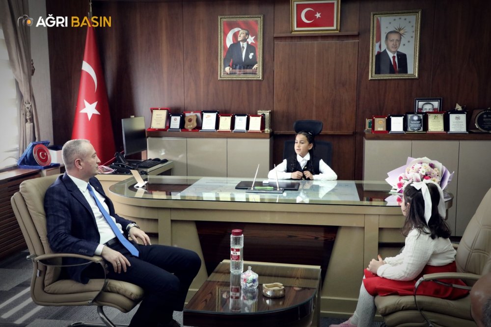 Ağrı’da 23 Nisan’da makam koltuğu öğrencilere devredildi. Minikler taleplerini dile getirdi, renkli anlar yaşandı.