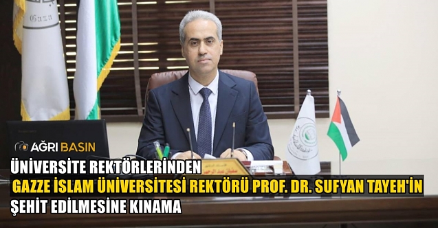 Ağrı İbrahim Çeçen Üniversitesi'nden Rektörü Prof. Dr. Sufyan Tayeh'in şehit edilmesine kınama.