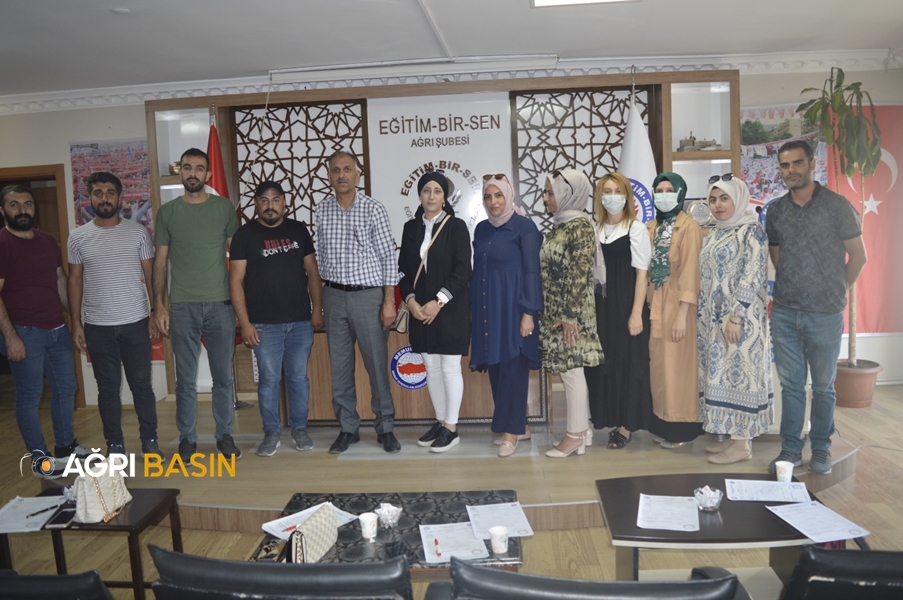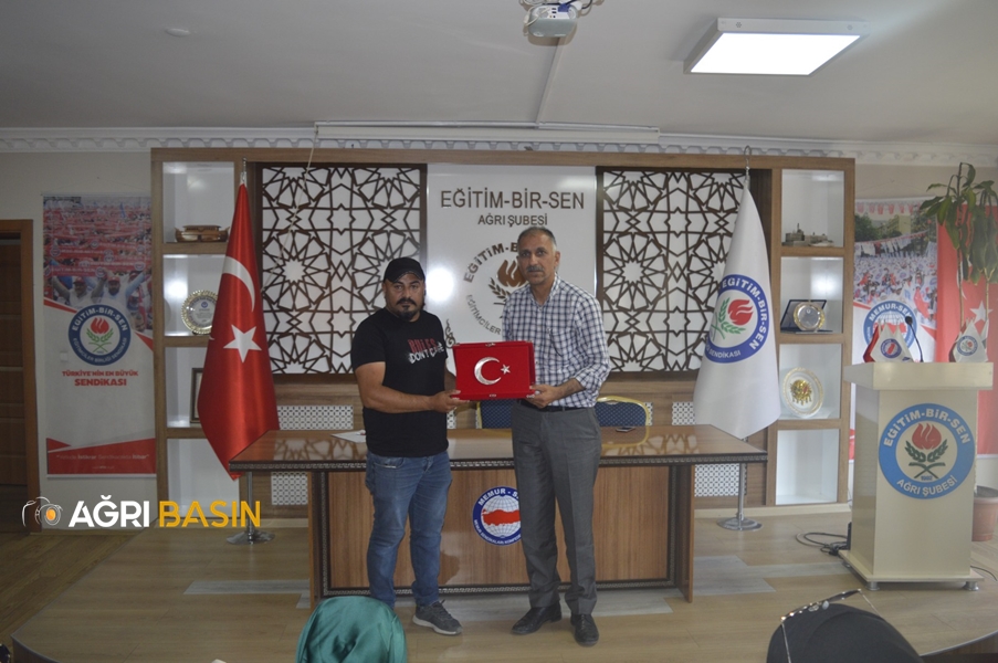 Bunun için öncelik olarak Eğitim Bir Sen e başvuran Şahin ‘ Sendikamıza bizi davet ettikleri için teşekkür eder yanımızda oldukları için minnettar olduğumu belirtirim’ dedi. Eğitim Bir Sen Ağrı şube Başkanı Abdurrahman ASLAN ise ‘ halkımıza eğitim veren üreten sanatkarlarımızın ve usta öğreticilerimizin her zaman yanındayız. Sendika olarak arkadaşlarımızın sesini ve sorunlarını sürekli dile getirmek, onların yanında olmak bizim vazifemizdir’ dedi.