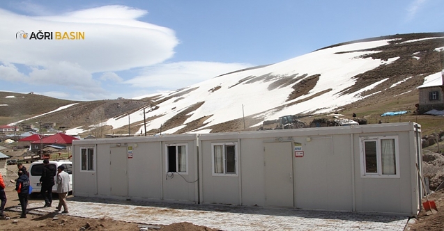 Patnos’ta deprem sonrası ağır hasarlı evler için 3 köyde 19 konteyner kuruldu. Ailelerin barınma ihtiyacı karşılandı.